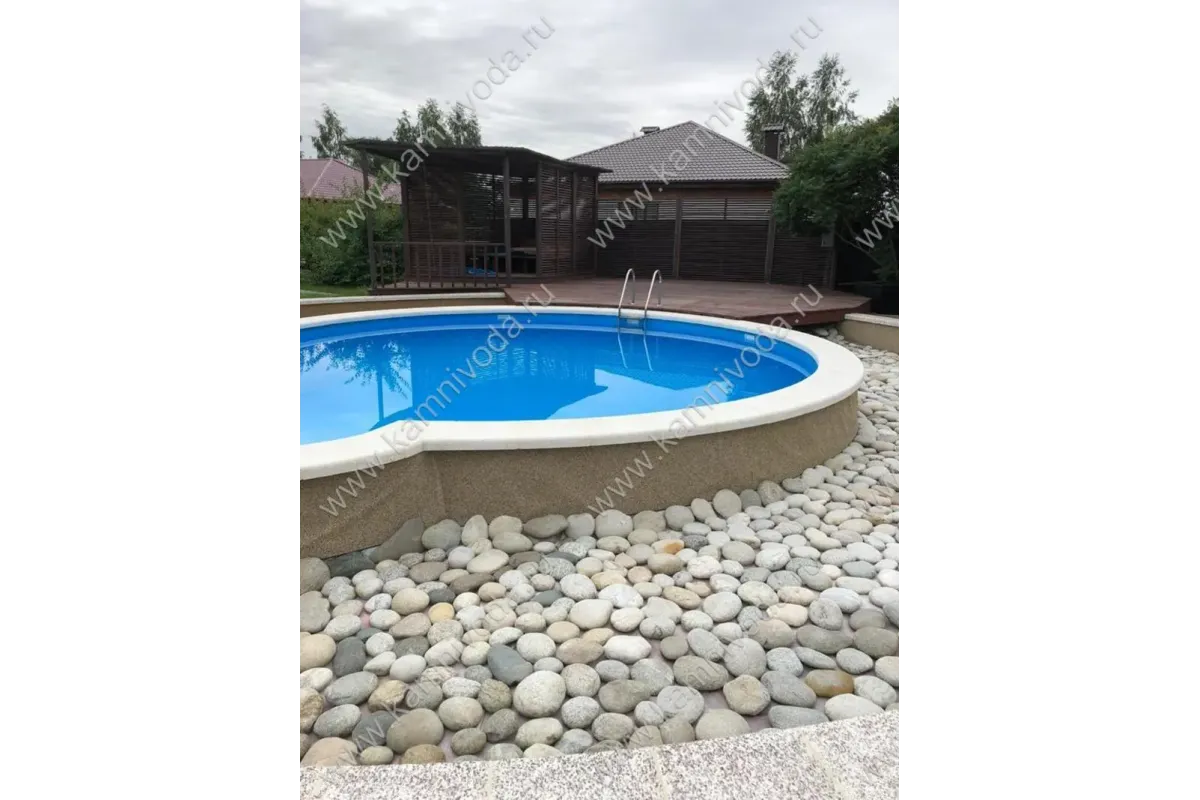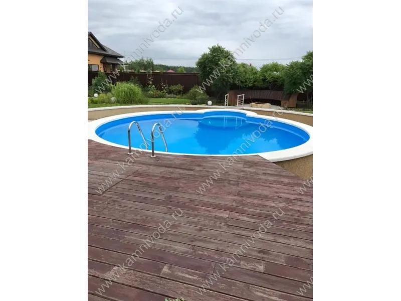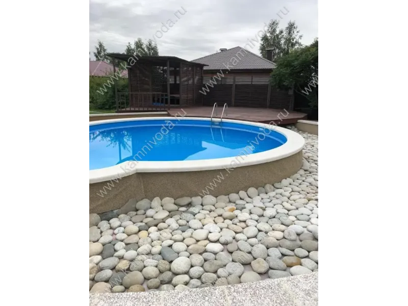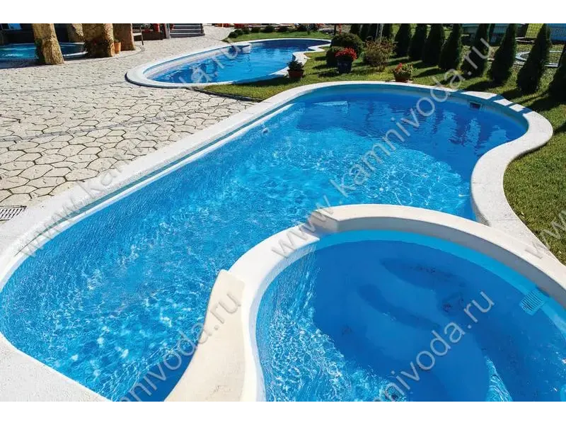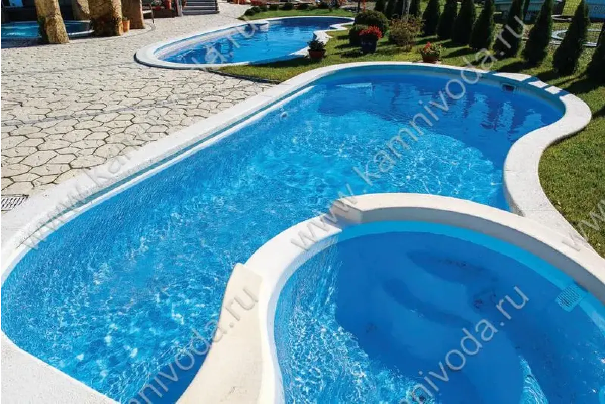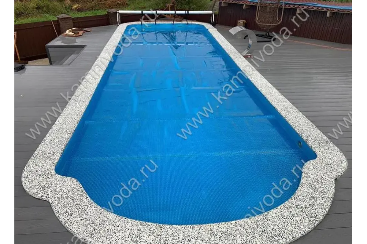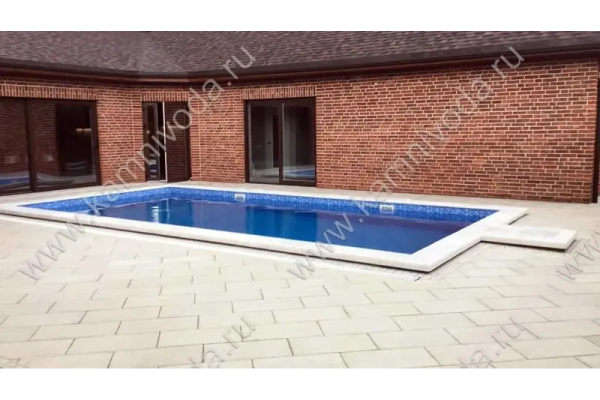 Бордюрный камень из мраморной крошки может быть изготовлен любой ширины (кроме формы "домик") и при помощи него можно окантовать бассейн любой формы. Профиль камня из мраморной крошки может быть плоский, «домик» (ширина только 320 мм.), Г-образный или П-образный, а так же террасная плитка 400*400 мм..