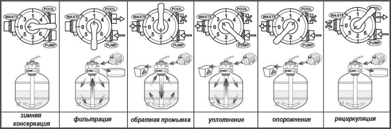 Основные режимы работы фильтровально установки бассейна: