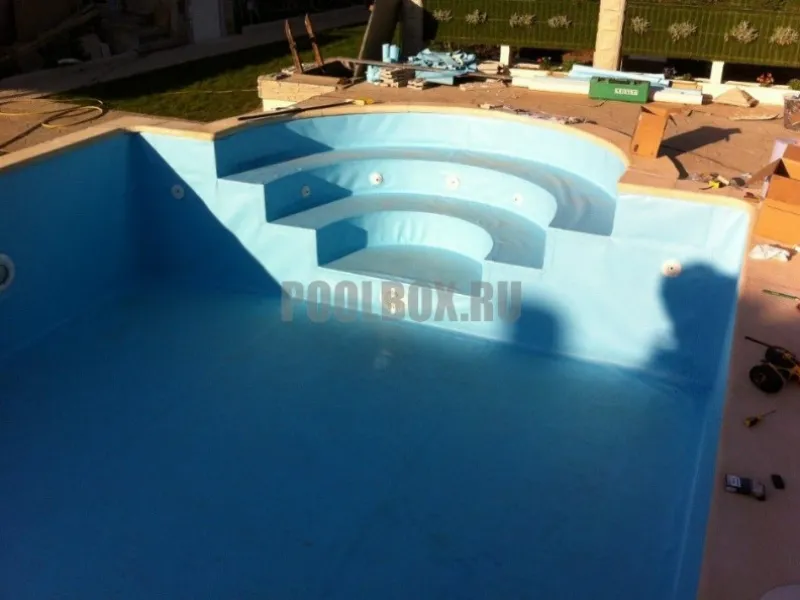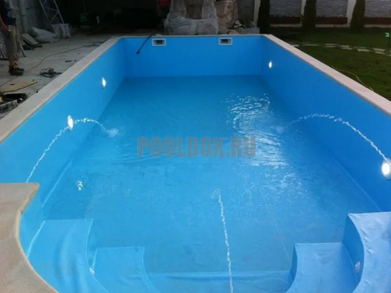 Бассейн с отделкой из монотонной ПВХ мембраны 1,5 мм.