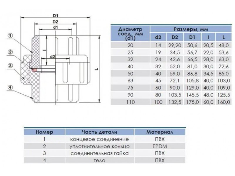 Муфта разъемная д. 110 х 4" Aquaviva ПВХ/латунь
