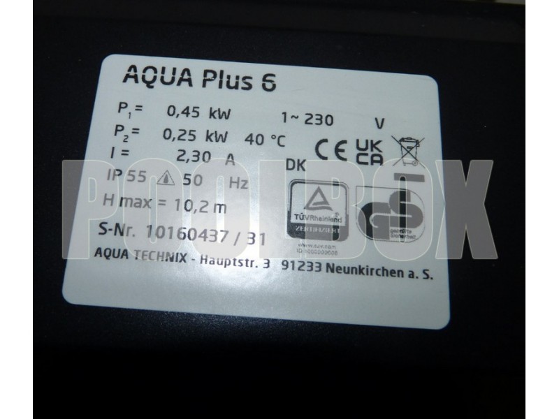 Для нормальной работы насоса (0,45кВт 220В) Aquatechnix Aqua Plus 6 необходимо обеспечить постоянный приток воды, что обеспечивает постоянное охлаждение комплекта сальников, изготовленных их керамографита. Пи работе насоса более чем 10 секунд без воды может привести к его поломке – перегрев сальника с последующим разрушением , деформации крышки задней фланца насоса и как следствие чего течь воды из корпуса насоса.