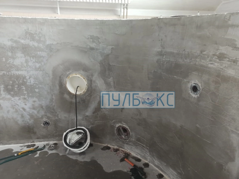 Бассейн 10х5 м. реконструкция (замена закладных элементов, отделка чаши пленкой ПВХ)