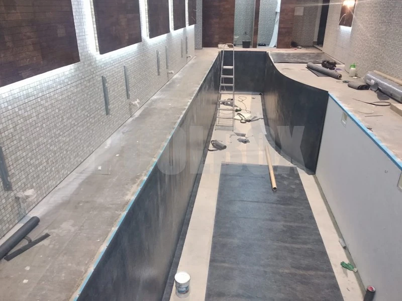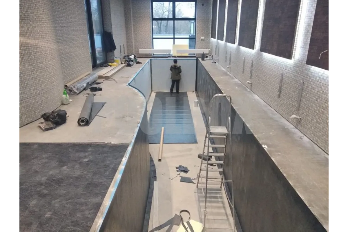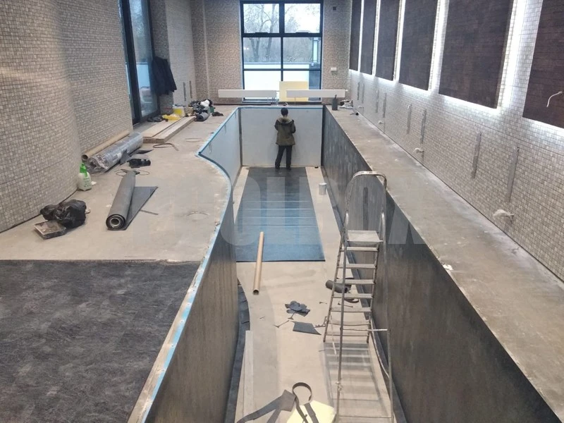Бассейн 10х4 м., гидроизоляция швов и отделка ПВХ мембраной