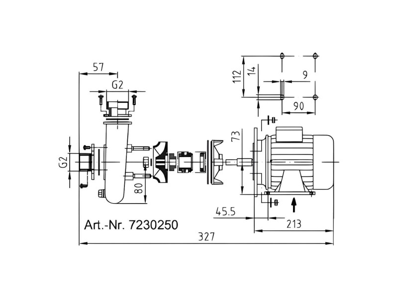 Насос Hugo Lahme 7230250 является одноступенчатым насосом, с расположением вала горизонтально и рабочим колесом одностороннего хода.